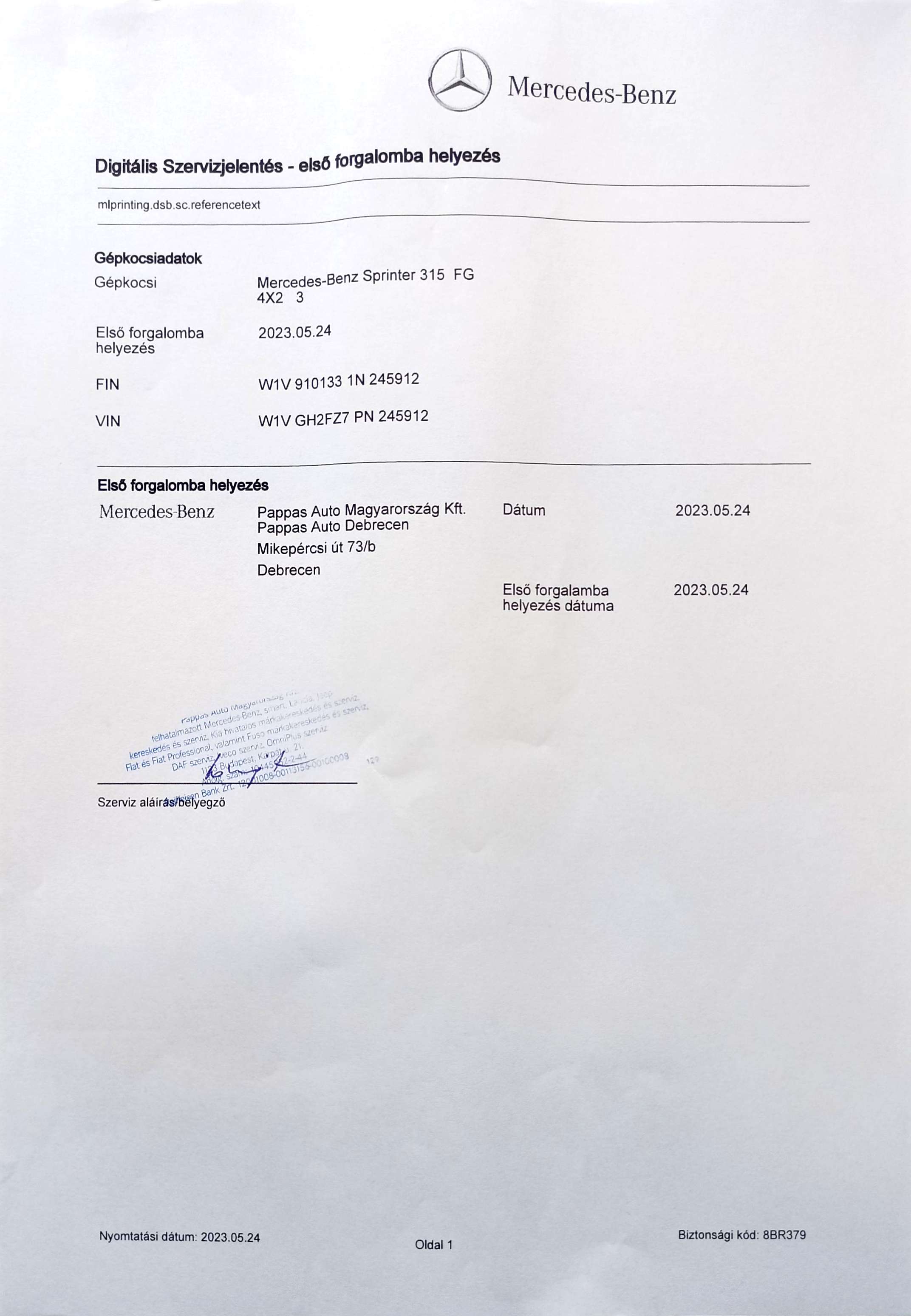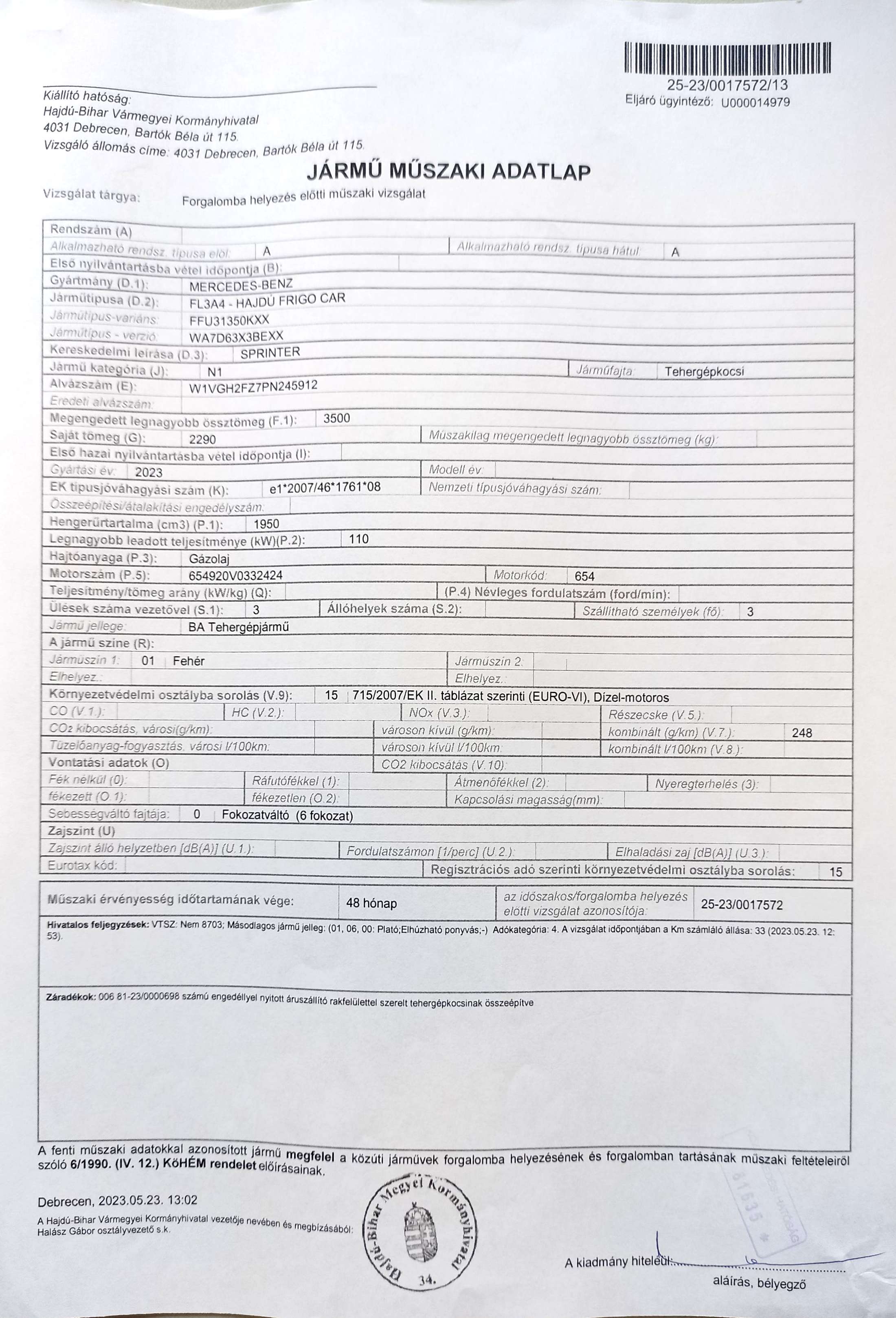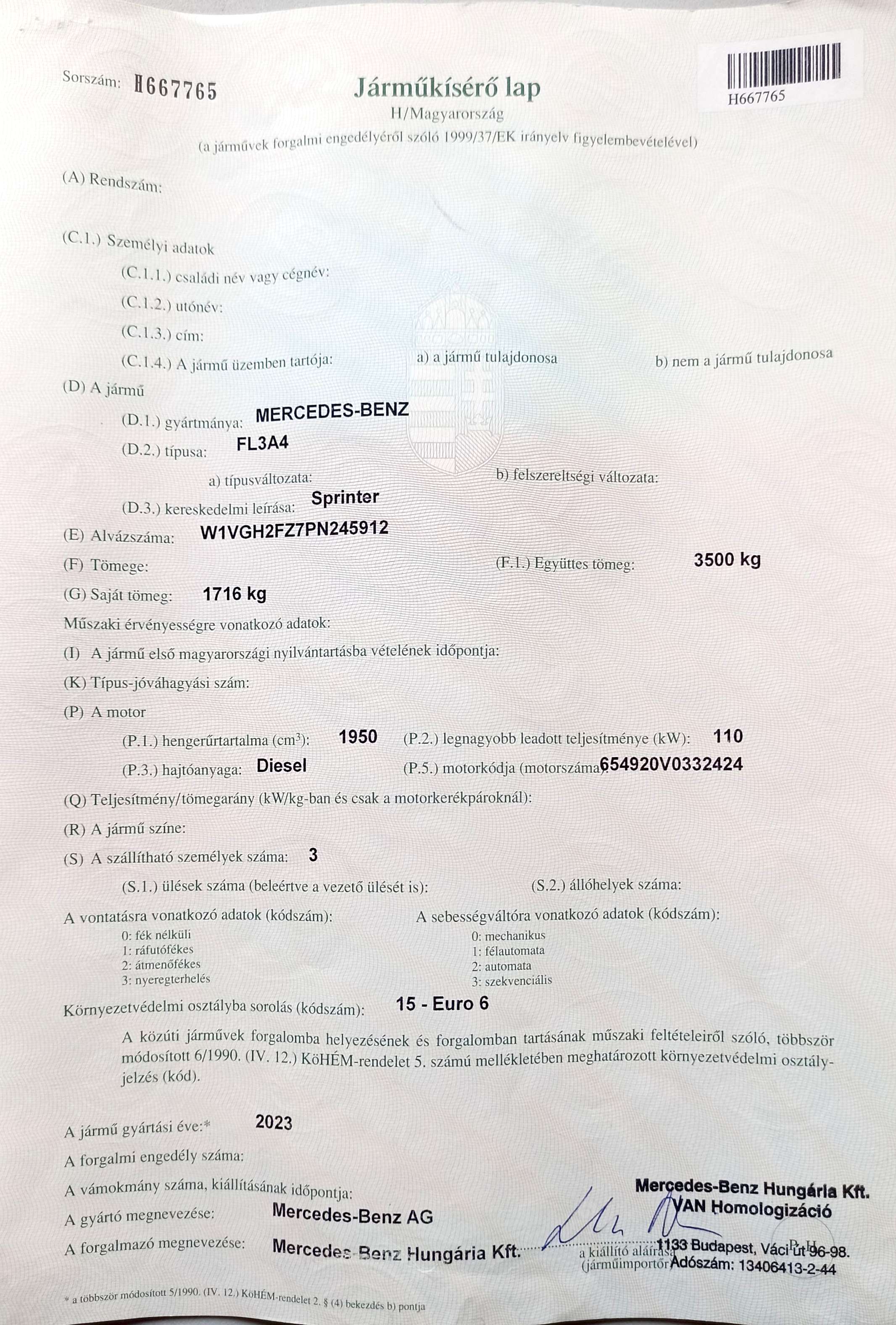 MERCEDES-BENZ SPRINTER 315 CDI 910.133.13 Artikweiss CSAK 153 km !!! Pappas Gyári GARANCIA +Körponyva +1.Tulaj!! |